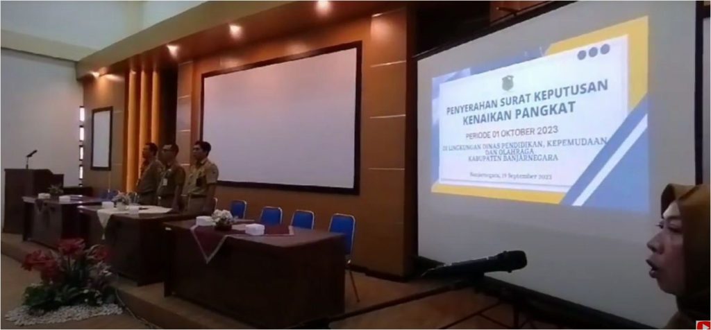 Penyerahan SK Kenaikan Pangkat Dindikpora Kab. Banjarnegara periode Oktober 2023 di Aula Lantai III Gedung A, Selasa 19 September 2023