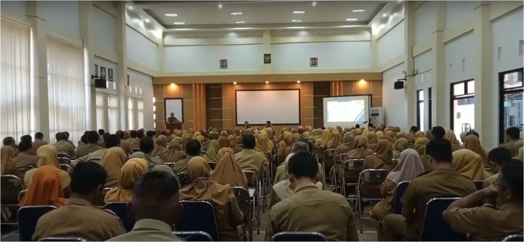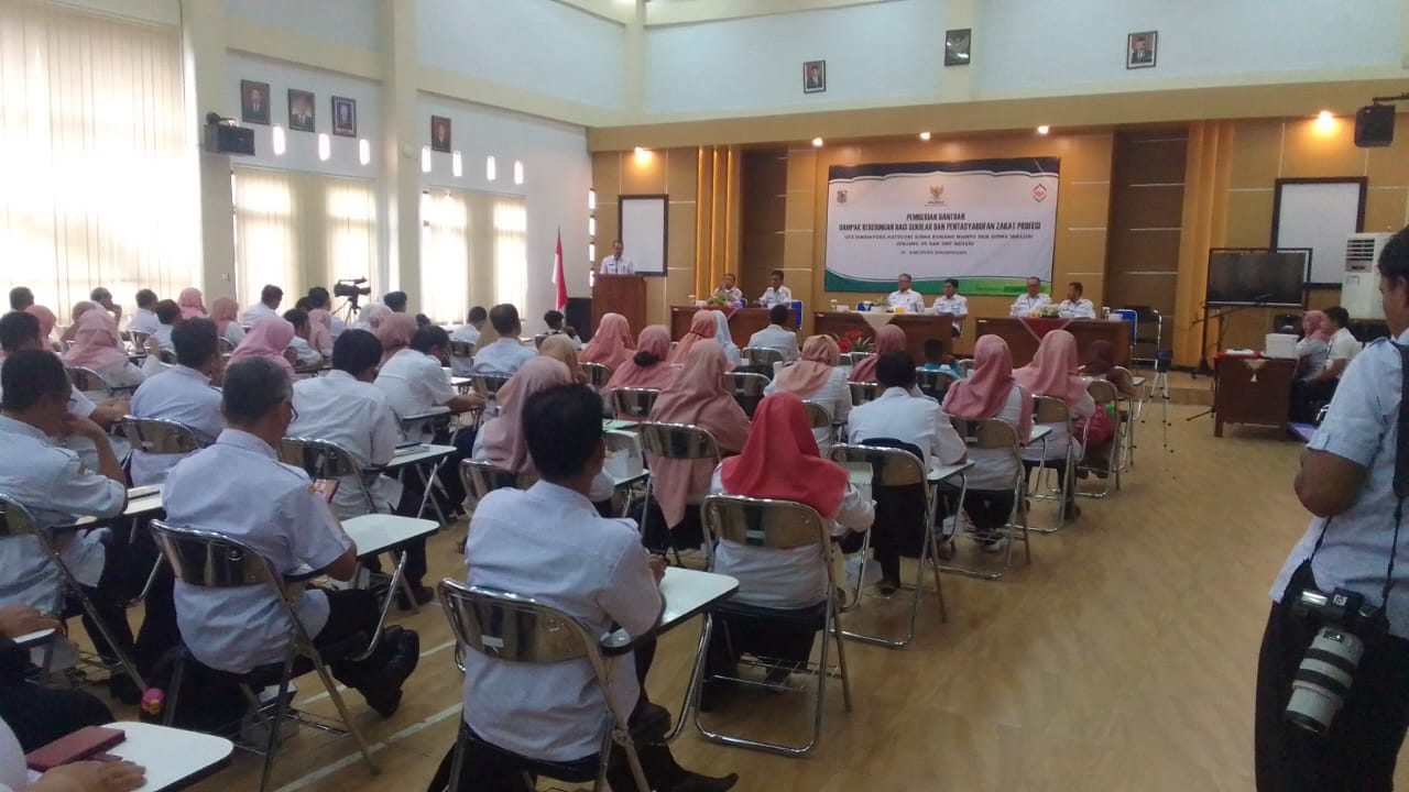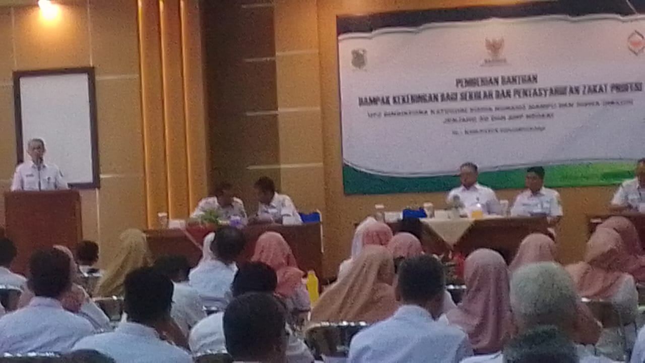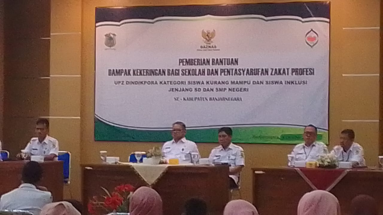 Pemberian bantuan dampak kekeringan bagi sekolah dan pentasyarufan zakat profesi UPZ Dindikpora kategori siswa kurang mampu dan siswa inklusi jenjang SD dan SMP Negeri se Kabupaten Banjarnegara Rabu 4 Oktober 2023 dihadiri Pj Bupati Banjarnegara di Aula Lantai III Dindikpora Kabupaten Banjarnegara.