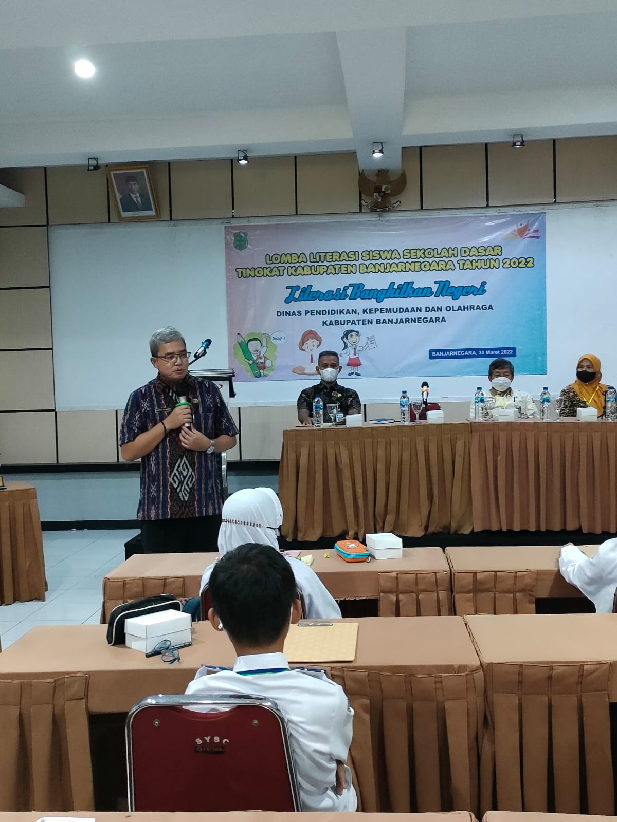 Lomba Literasi jenjang Sekolah Dasar tingkat Kabupaten Banjarnegara yang dilaksanakan pada hari Rabu, 30 Maret 2022 bertempat di Surya Yudah Park Banjarnegara dibuka secara resmi oleh Plt. Kepala Dinas Pendidikan, Kepemudaan dan Olahraga Kabupaten Banjarnegara Bapak Drs. Agung Yusianto, M.Si. pada pidato pembukaanya beliau berpesan kepada para siswa untuk mejadi anak-anak yang cinta terhadap literasi, karena dengan mecintai literasi dapat membangkitkan negeri, berlombalah dengan jujur dan sportif, apapun hasilnya berikan yang terbaik untuk para guru pendamping jangan bosan-bosan untuk mengingatkan kepada para siswa untuk gemar membaca dan menulis, karena dengan 2 hal tersebut siswa-siswi bisa mencintai budaya literasi, tentunya dengan tetap diberikan bimbingan dan pendampingan yang nyaan bagi siswa-siswi. Pungkasnya.