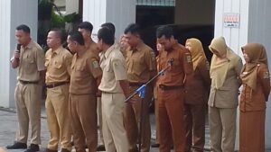foto : Perkenalan 13 Tenaga PPPK Baru Dindikpora saat apel pagi Senin (01/04/2024)