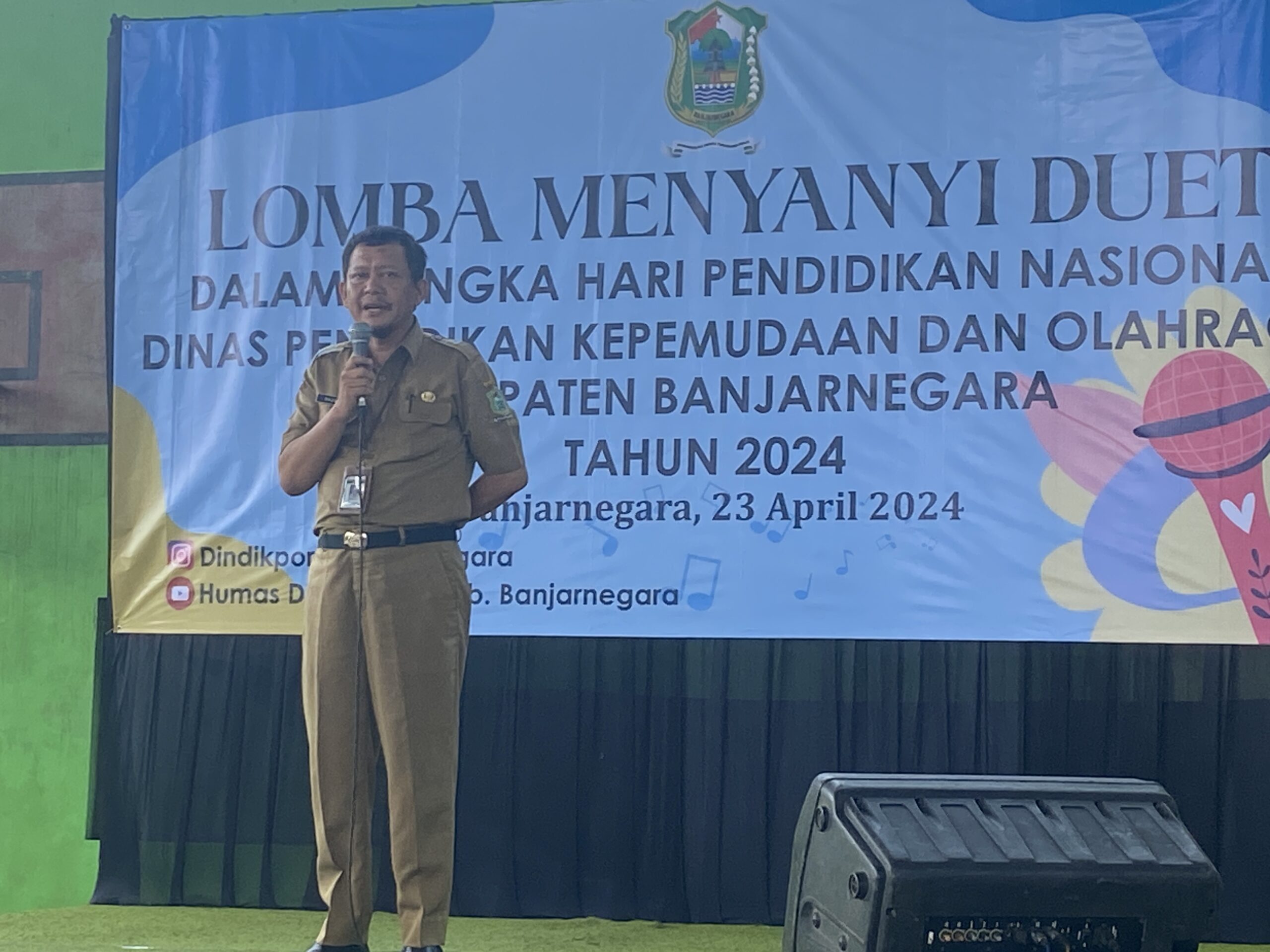 Banjarnegara – Dalam rangka mengasah dan menyalurkan bakat para guru dalam seni olah vokal , Dinas Pendidikan, kepemudaan dan olahraga Kabupaten Banjarnegara menyelenggarakan Lomba Menyanyi duet . Kegiatan ini bagian dari rangkaian Hardiknas 2024. Lomba Menyanyi duet ini dilaksanakan di Aula Indoor SMP N 2 Banjarnegara.