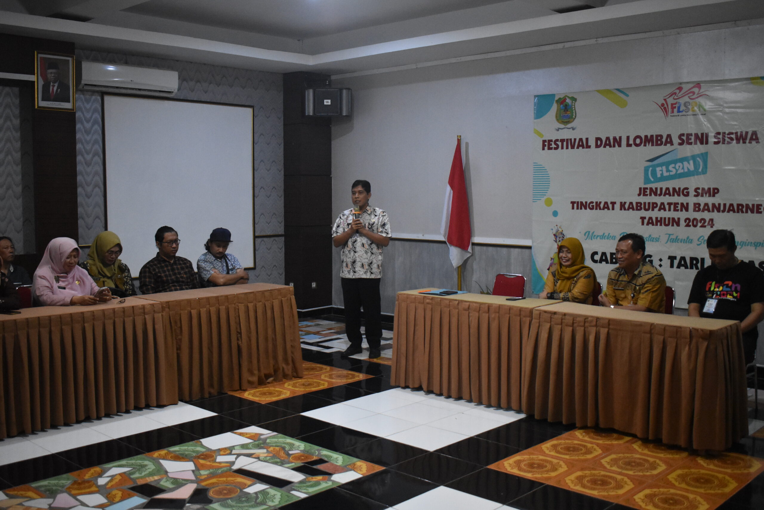 Banjarnegara – Kegiatan Festival Lomba Seni siswa nasional jenjang SMP di gelar Kamis ( 16/05/2024 ) di komplek Surya Yudha Park Banjarnegara. Ada 6 cabang lomba pada kegiatan FLS2N jenjang smp di antaranya Tari kreasi , Kreativitas musik nasional , Ansambel campuran, Menyanyi solo , Ilustrasi dan Pantomim.