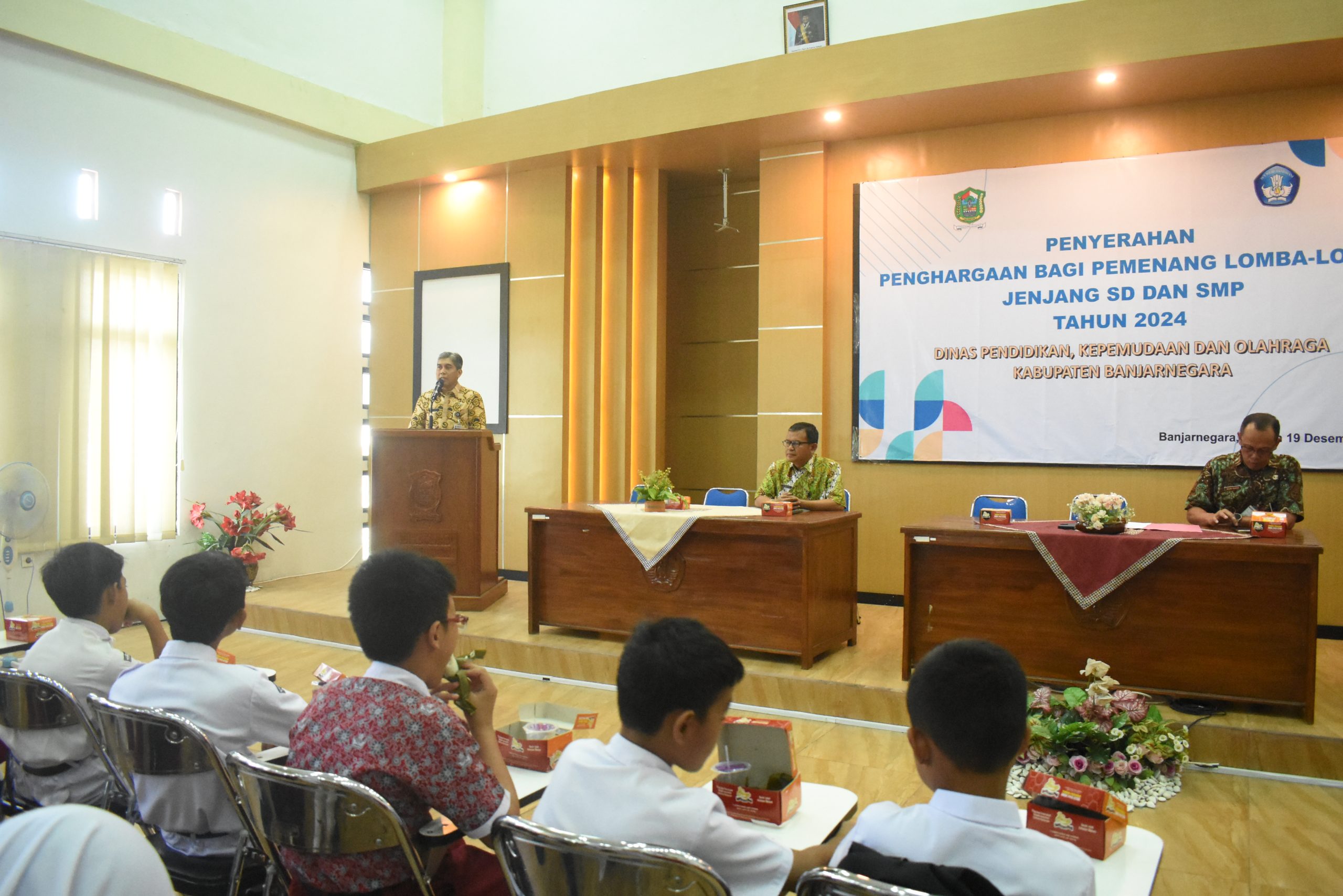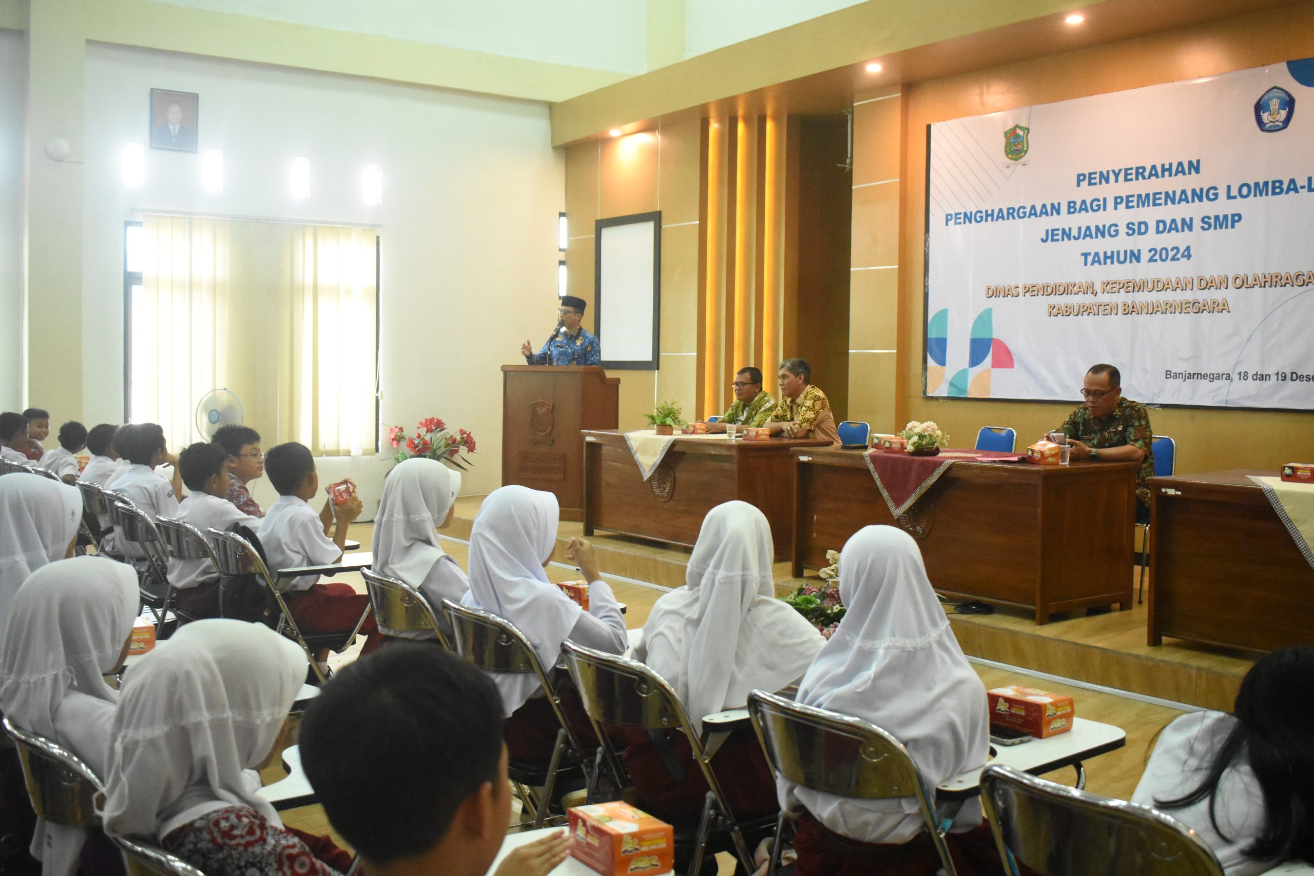 Banjarnegara – Sebanyak 201 siswa berprestasi jenjang Sekolah Dasar (SD) di Banjarnegara menerima penghargaan berupa piagam, piala, dan jasa prestasi dalam acara yang digelar di gedung lantai 3 Dindikpora Banjarnegara, Rabu (19/12/2024).